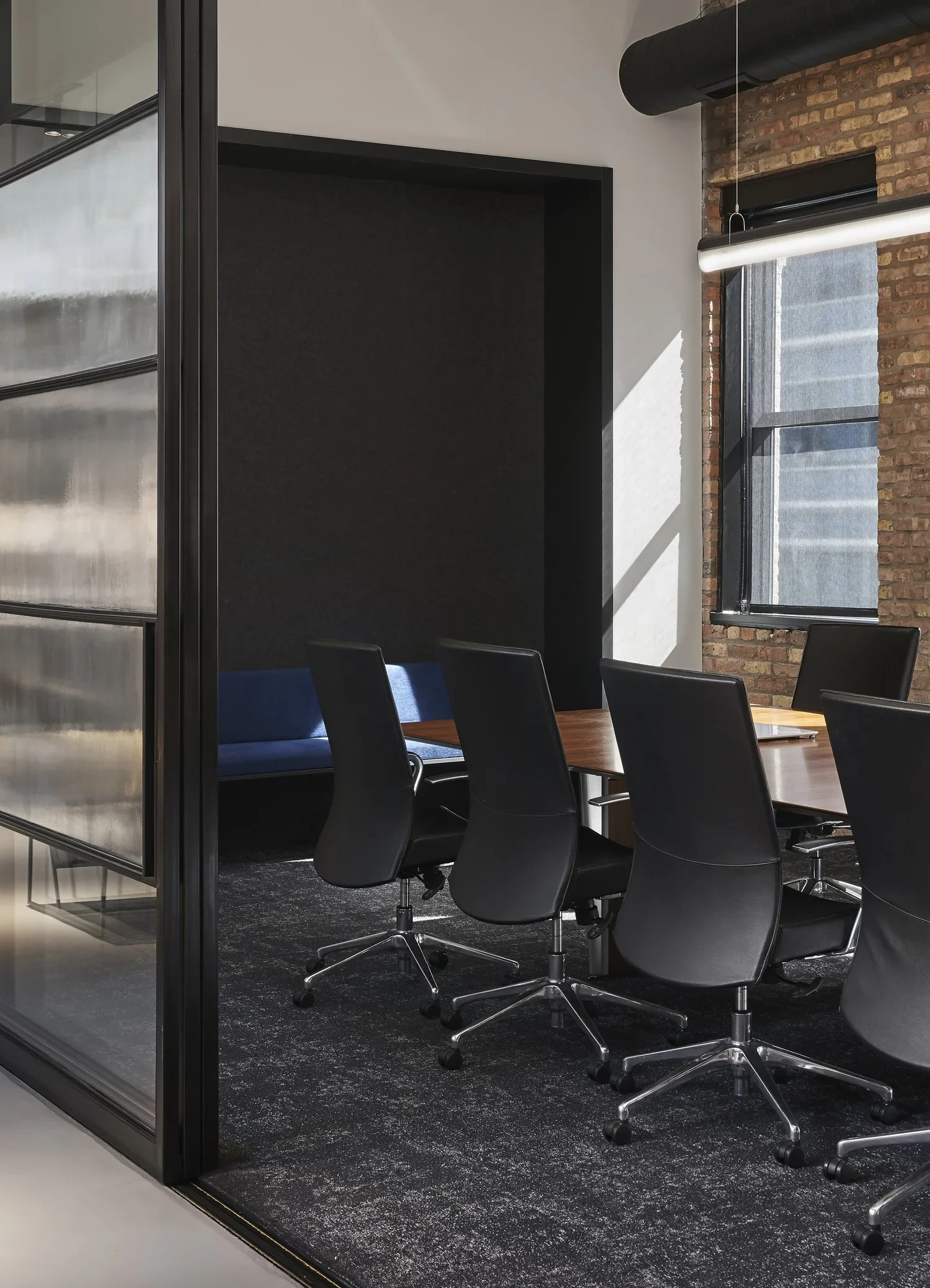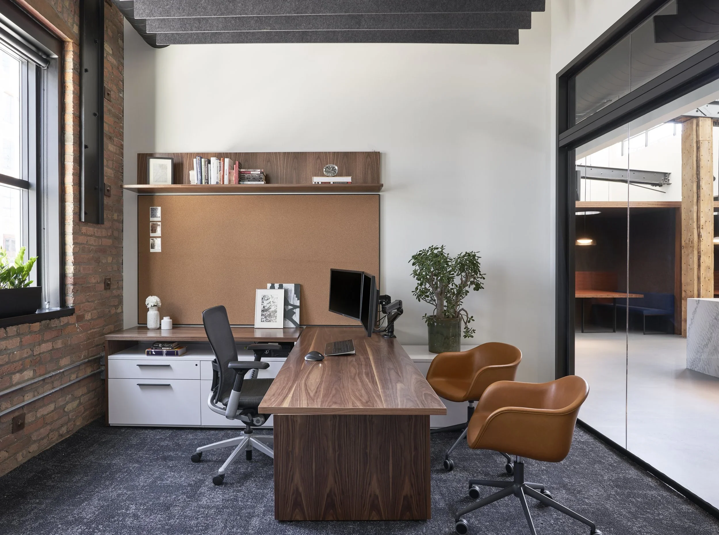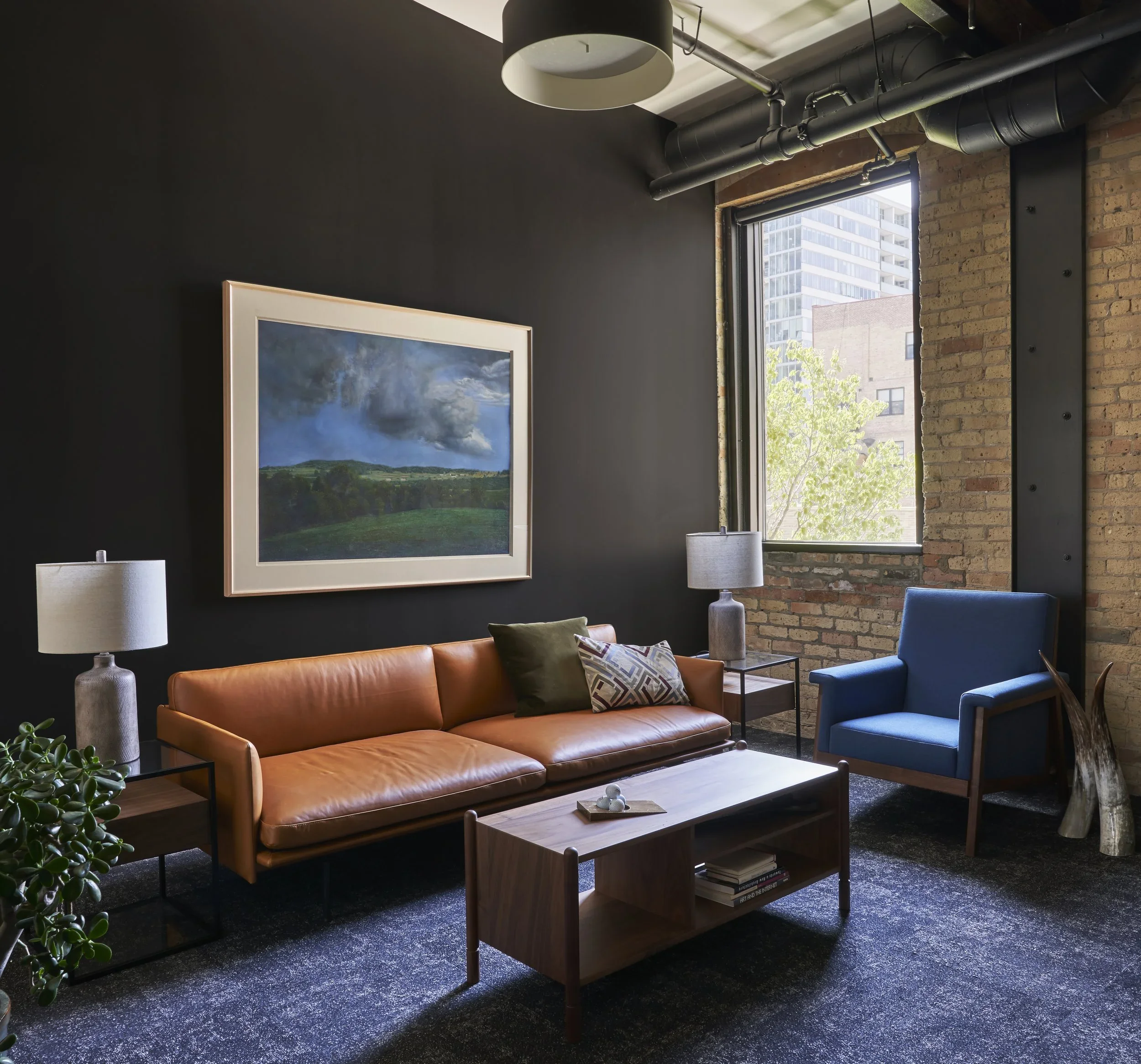 An investment firm headquarters that brings residential polish and material richness to a raw West Loop loft—tailored and layered.