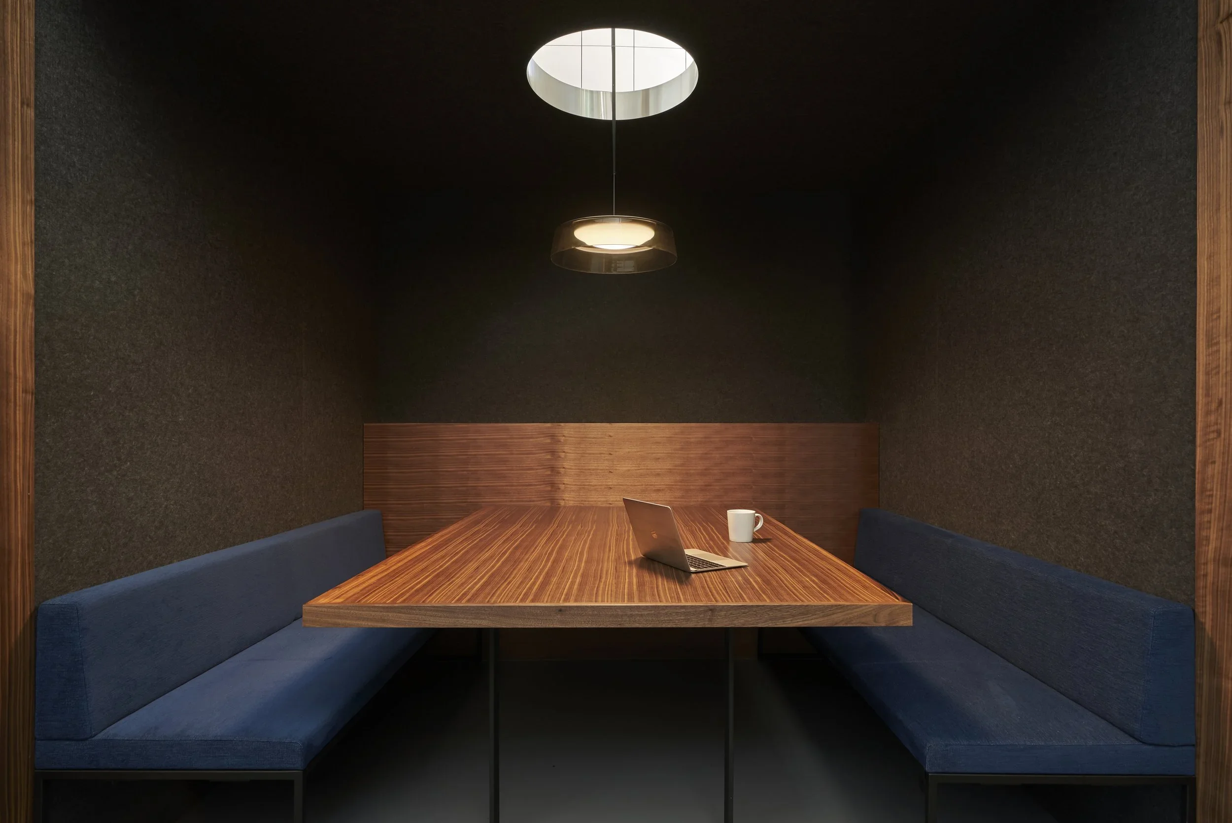 The result is an office that feels built-in rather than fit-out—more akin to a home or hospitality space than a leased workplace. Every corner was considered, from the dropped pendant lights in the booths to the daylight threading its way into the center of the plan. This is a workplace built for longevity, with the personality and confidence of its owners woven into the architecture.